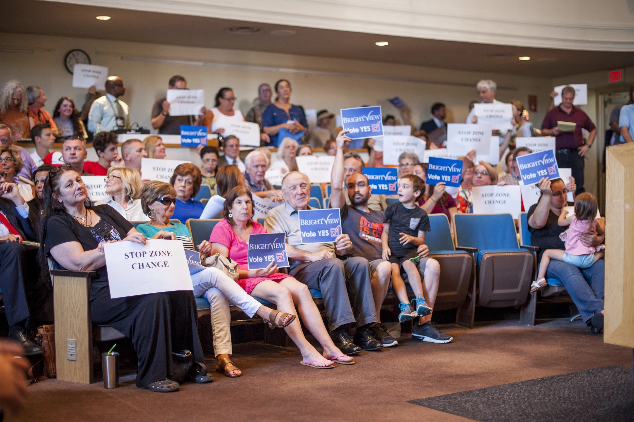Both supporters for and advocates against a proposed Brightview Senior Living assisted living center in Dix Hills swarmed to Huntington Town Hall on Tuesday for a public hearing on the proposal held during the monthly town board meeting.