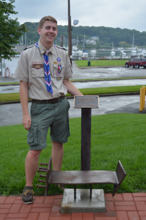 In March 2014, Magerle met with Herb McGrail, a chair of the advancement committee of the Boy Scouts Suffolk County Council. The two went over Magerle’s plan: a circle-shaped brick patio would serve as the platform for the piece of WTC steel, which would be mounted alongside a memorial plaque. The memorial would rest between two others on the fire department’s property and overlook Halesite Marina.