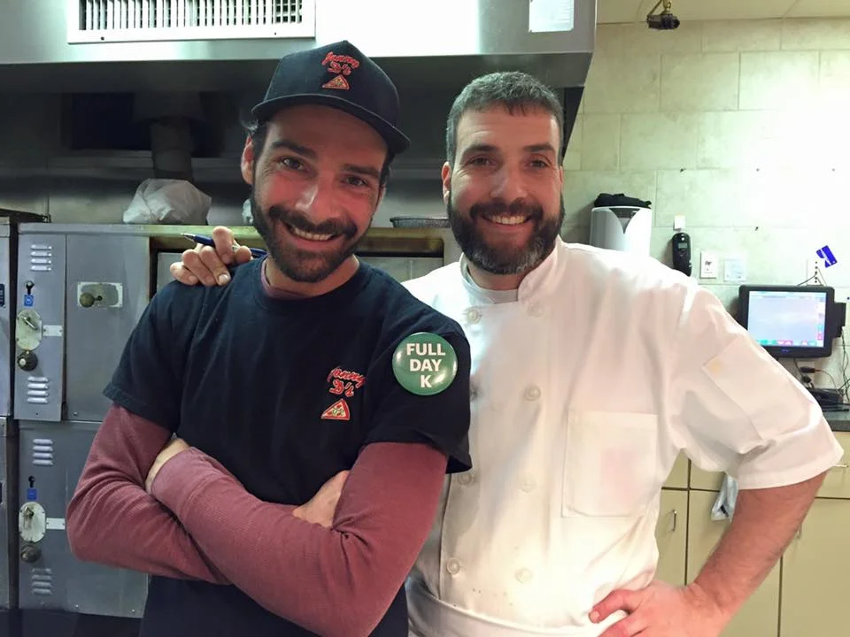 Jared Dawson and brother Chef Ray Dawson, of Jonny D’s Pizza in Greenlawn, were the first local merchants to join “Project Button,” a movement pushing for full-day kindergarten to be implemented next school year in the Harborfields Central School District. Photos provided by Rachael Risinger