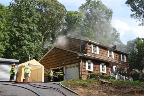 Huntington Manor firefighters began battling the fire and were assisted by the Dix Hills and Greenlawn fire departments. Melville Fire Deparment provided standby coverage during the alarm.