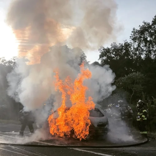There were no injuries reported, but the blaze intensified when the gas tank ruptured.