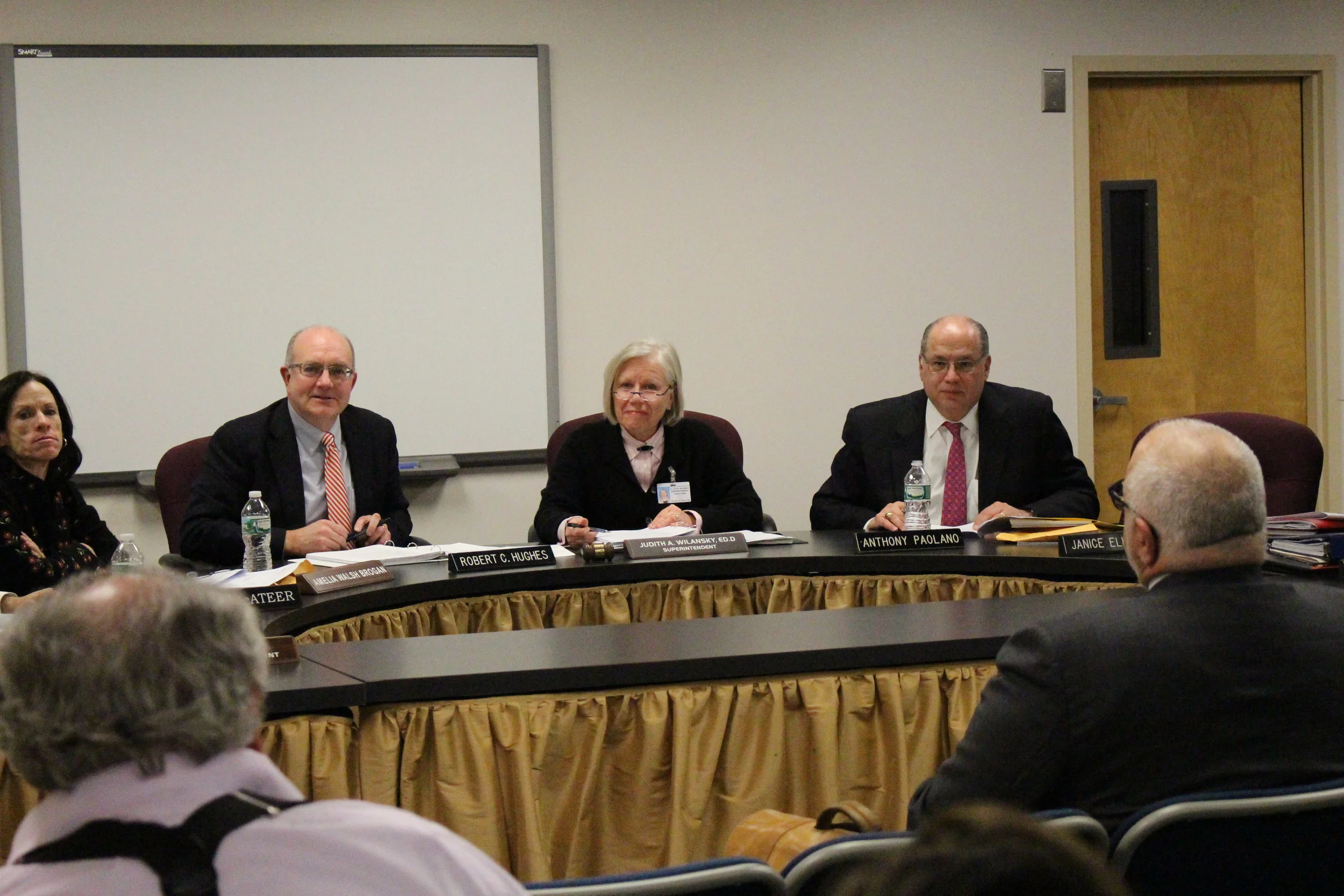 The Cold Spring Harbor school board, pictured above, will put a referendum before voters early next year for a proposed $4.8-million bond to build a new physical education facility at Cold Spring Harbor Jr./Sr. High School.