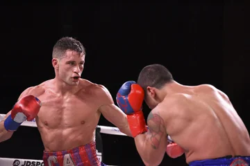/Chris Algieri, left, throws a body punch during his victory over Danny Gonzalez at MSG. Photos/Star Boxing