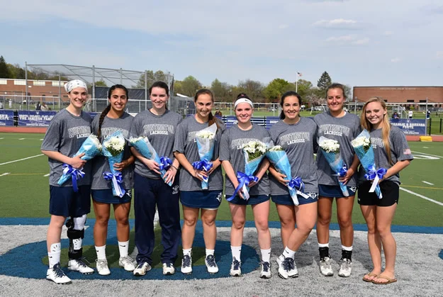 The Huntington girls lacrosse team honored its eight seniors on Monday afternoon prior to its game against visiting West Babylon, celebrating the careers and contributions of a group of talented teenagers.
