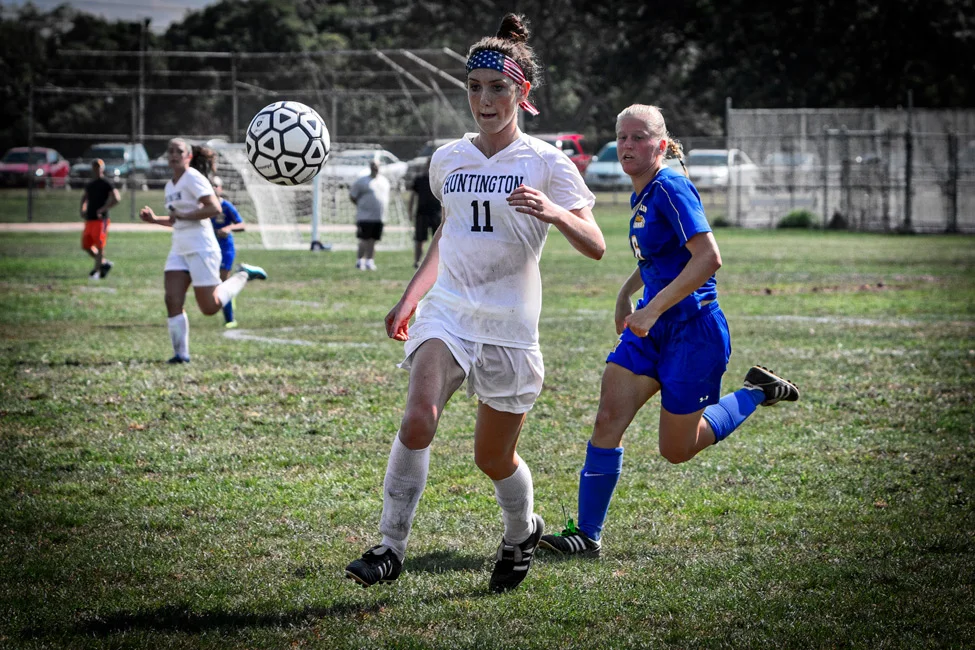 Huntington’s Ryann Gaffney, a member of the school’s soccer, track and lacrosse teams, chases down the ball.
