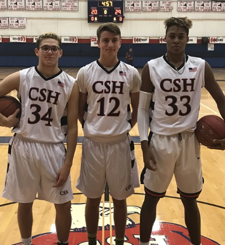 /Juniors, from left, Jack Vavassis, Nick Suter, and Aidan Adomaites were named co-captains of the Cold Spring Harbor boys varsity basketball team. Photo by Jason Mercurio