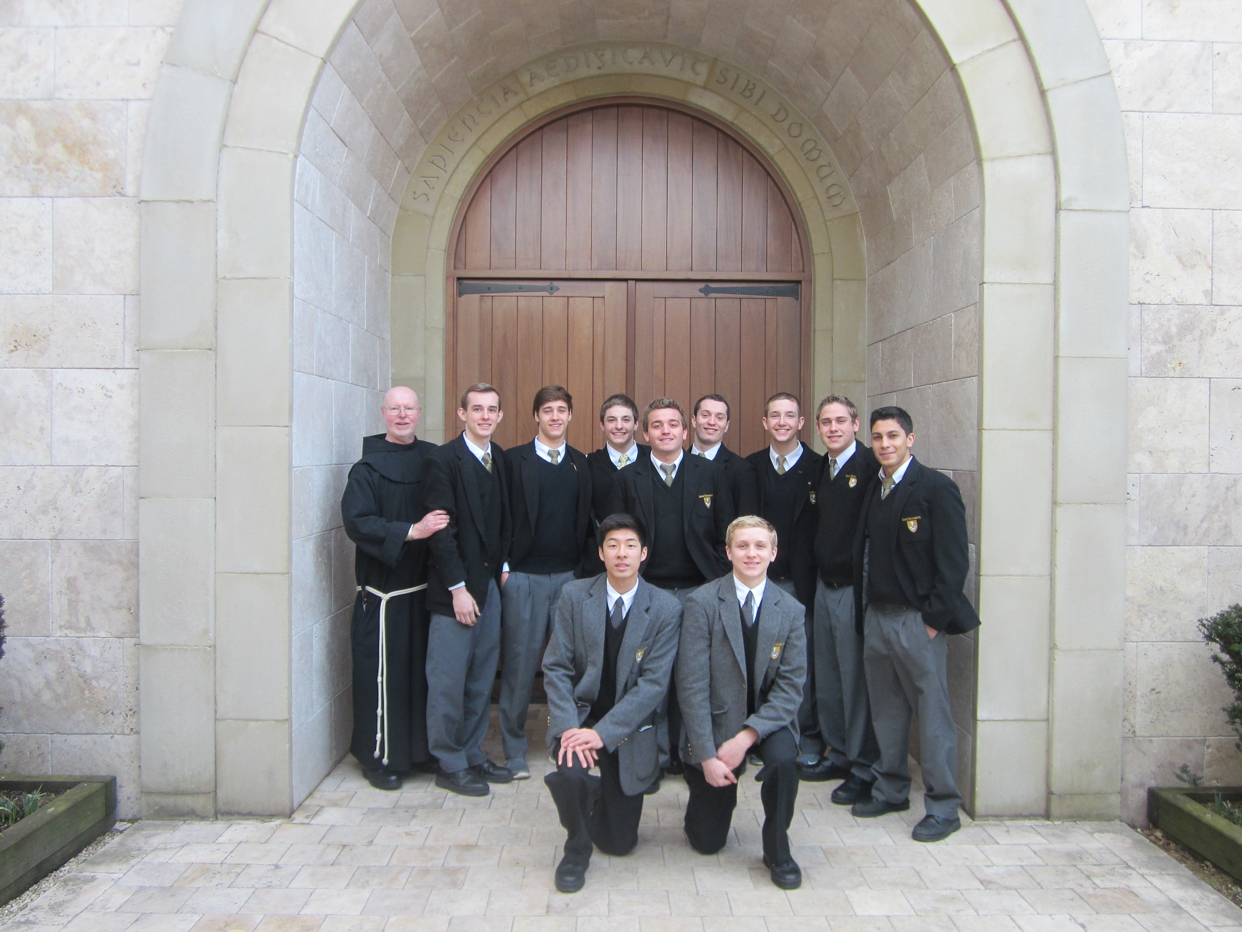 Members of the St. Anthony’s Friars swim team are pictured with Bro. Gary Cregan, OSF, principal of the high school. Photo provided by St. Anthony’s High School
